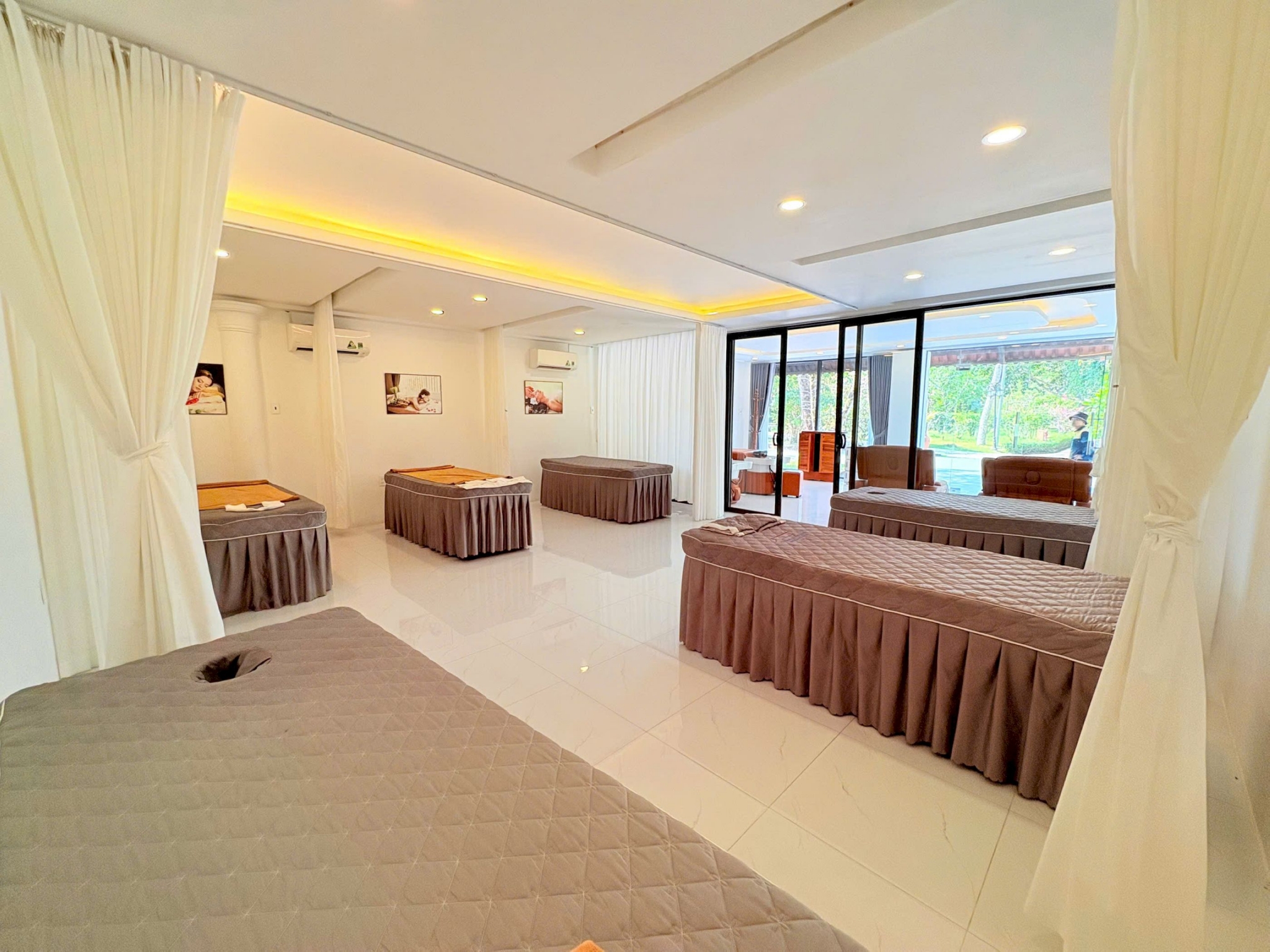Nằm tách biệt trong không gian yên tĩnh được bao phủ bởi vô số loài hoa tươi sắc, đây là nơi yên tĩnh để Du khách nam nữ thả mình thư giãn phục hồi sức khỏe sau thời gian chinh phục Đảo ngọc.